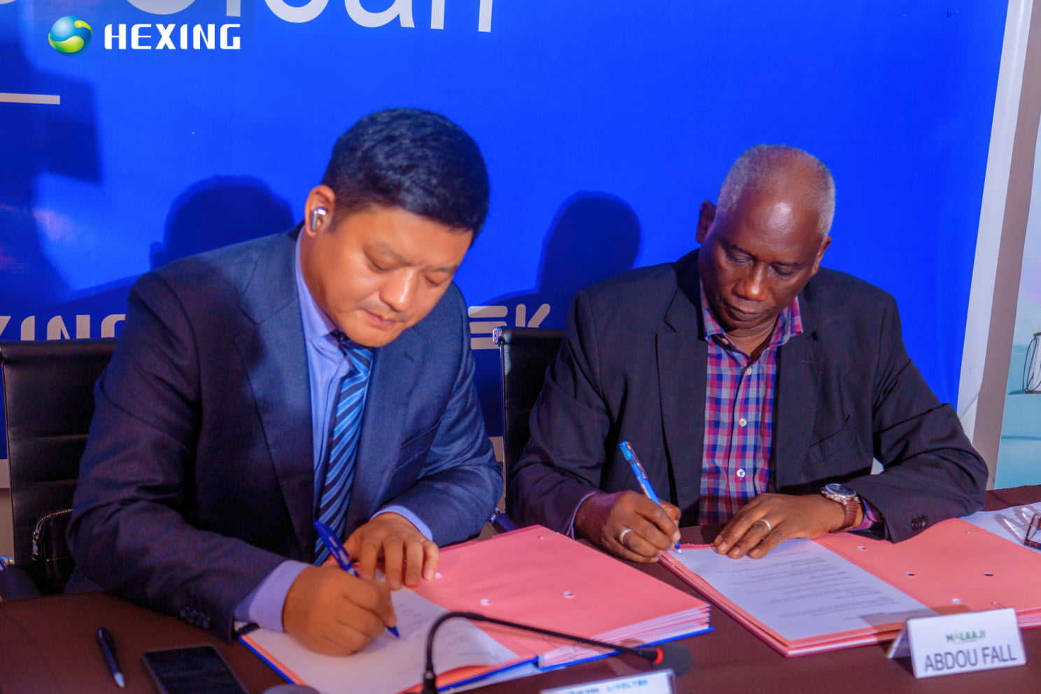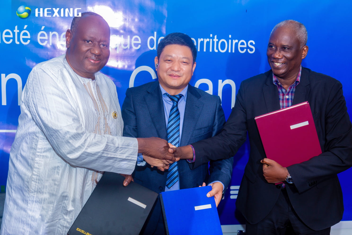 海兴非洲副总裁刘高峰(照片居中)与AMS主席Oumar Ba(照片左侧)、MALAAJI SOLAR代表Abdou Fall(照片右侧)共同出席仪式。