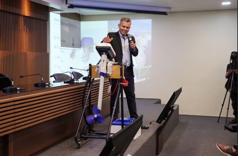 利沃得的工业经理 Márcio Sousa 介绍了公司的创新成果:一款电动船尾驱动马达,预计将于 2026 年在马瑙斯工业园区 (PIM) 投入生产。该经理解释说,这项创新技术专为河滨社区设计,旨在减少河流污染和燃烧。目前,船尾驱动马达通常由汽油或柴油驱动。